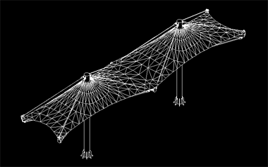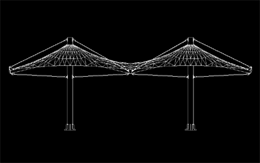 该膜结构工程投影面积约30平米,膜材是用MS-04型膜材,。全套图纸包括钢结构图、膜节点板图、膜材下料图及排版图。