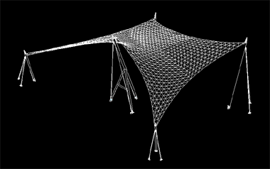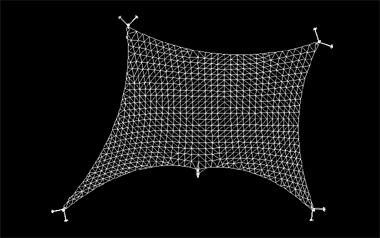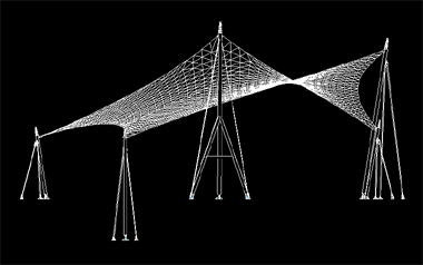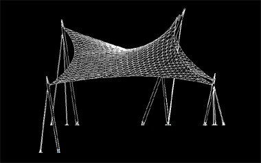 该膜结构工程投影面积100平米,膜材是用法拉利702T膜材,为张拉膜结构。全套图纸包括基础图、预埋件图、钢结构图、膜节点板图、膜材下料图及排版图。