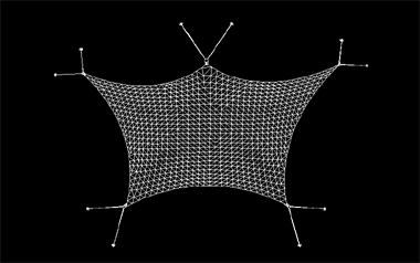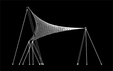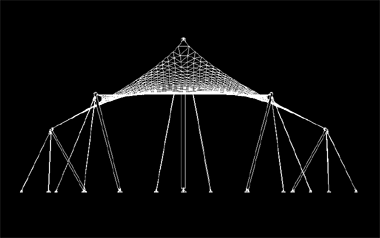 该膜结构工程投影面积约90平米,膜材是用MS-04型膜材,为张拉式膜结构。全套图纸包括钢结构图、膜节点板图、膜材下料图及排版图。