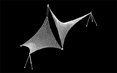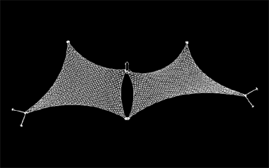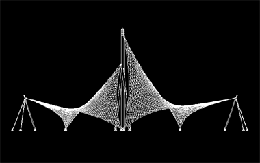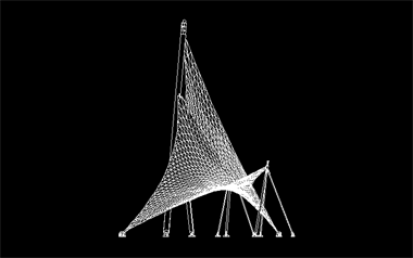 该膜结构工程投影面积约60平米,膜材是用法拉利702T膜材,为典型的张拉式膜结构。全套图纸包括基础图、预埋件图、钢结构图、膜节点板图、膜材下料图。