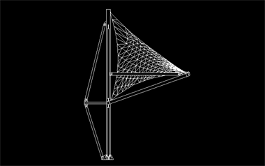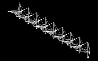 该膜结构工程投影面积约110平米,膜材采用米勒膜材,为长廊结构。全套图纸包括钢结构图、膜节点板图、膜材下料图及排版图。