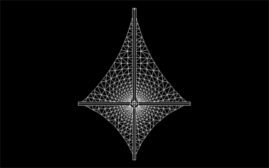 该膜结构工程投影面积约75平米,膜材采用秀博膜材,整个造形仿佛一支盛开的花朵。全套图纸包括钢结构图、膜节点板图、膜材下料图及排版图。